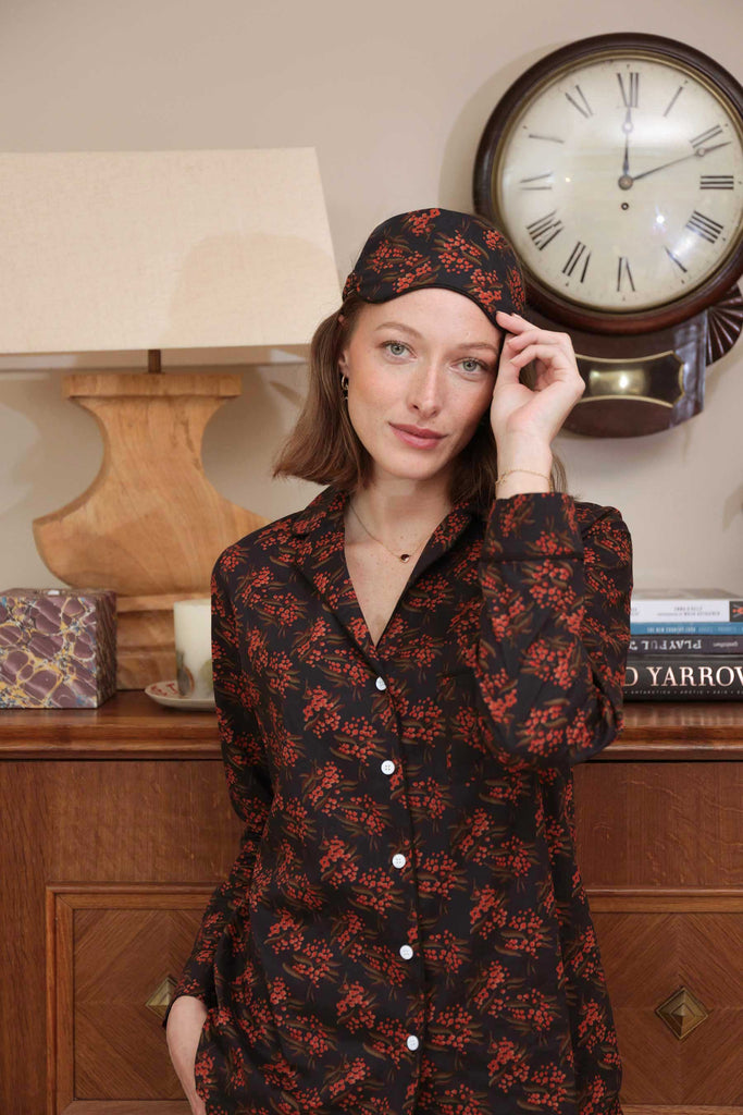 Cotton Printed Pyjama Set | Mimosa Print Black Floral Pyjama Set | YOLKE